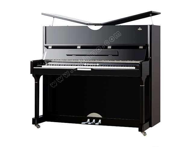 德國R?slau(羅斯勞)琴弦;德國mendelssohn專制羊毛擊弦槌;德國原裝進口音板,并配有音板保證卡;松實木鍵盤、烏木黑鍵,令手感更加舒適、靈敏。